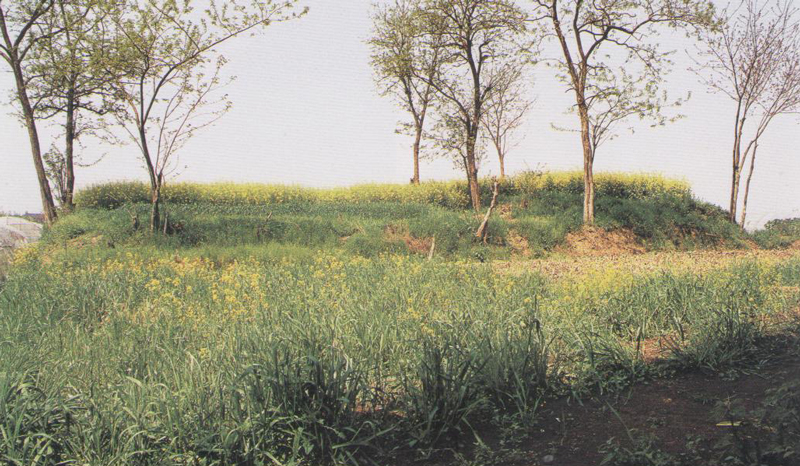 万家坟,战国时代,位于鸿山遗址中部偏西,在杜家坟西侧,长方形覆斗状土墩,东西向,长42.6米、宽35.9米,高出周围平地3.8米。
